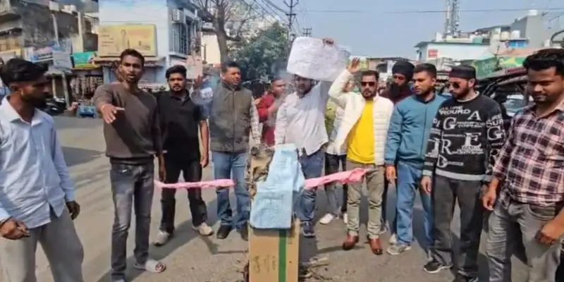 रामनगर: शिक्षा निदेशालय में डायरेक्टर से मारपीट मामले में यूथ कांग्रेस ने लखनपुर चुंगी में भाजपा विधायक उमेश शर्मा काउ...