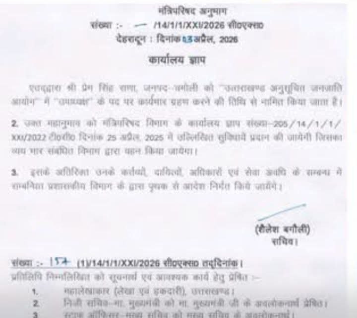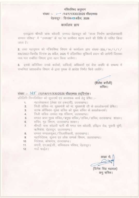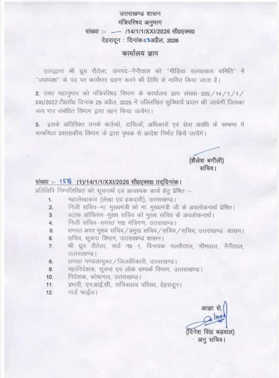 एतद्वारा श्री ध्रुव रौतेला, जनपद-नैनीताल को “मीडिया सलाहकार समिति” में “उपाध्यक्ष” के पद पर कार्यभार ग्रहण करने की तिथि से...