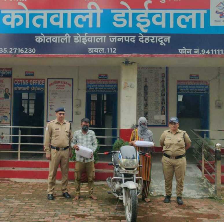 मा0 मुख्यमंत्री उत्तराखंड के *”ड्रग्स फ्री देवभूमि 2025″* के विजन को साकार करने के लिये वरिष्ठ पुलिस अधीक्षक देहरादून द्वारा सभी थाना प्रभारियों को नशा तस्करों के विरुद्ध प्रभावी कार्यवाही के निर्देश दिये गए है। उक्त निर्देशों के क्रम में डोईवाला पुलिस द्वारा चैकिंग के दौरान दिनांक 15/09/2025 को कुआंवाला, हर्रावाला के पास से 02 नशा तस्करों मौ० जावेद पुत्र मो० मुश्ताद को 02 किलो 50 ग्राम अवैध गांजे तथा पुष्पा पत्नी दिनेश को 02 किलो 10 ग्राम अवैध गांजे के साथ गिरफ्तार किया गया तथा तस्करी मे प्रयुक्त मो0सा0 सं0- UA07H-2090 को सीज कर कोतवाली डोईवाला पर दोनो अभियुक्तों के विरुद्ध NDPS ACT के तहत अभियोग पंजीकृत किया गया।