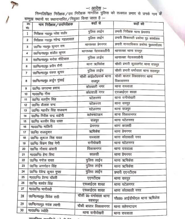 देहरादून से बड़ी खबर ट्रांसफर किए गए पुलिस अधिकारी